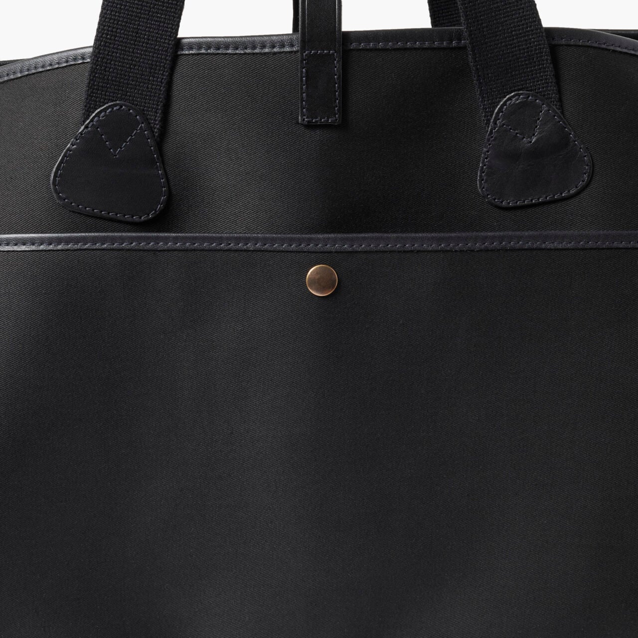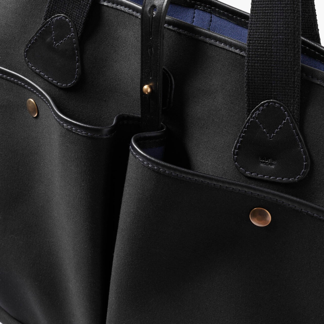 So we decided to come up with something that mixed all the best parts of a bag and none of the weird stuff… welcome to the Laneside tote. We started by looking at shapes that were elegant, but no too try-hard and that led us to this modified tote that you see before your eyes. There are two front pockets with a press stud which give you easy access to things that you need regularly with the added security of brass stud to keep things safely stowed. At the back is a poppered folder/laptop holder, I know most laptops probably won’t fit in there, but if you are in the office, in a rush and the main compartment is overloaded, you can definitely fit it in there temporarily.