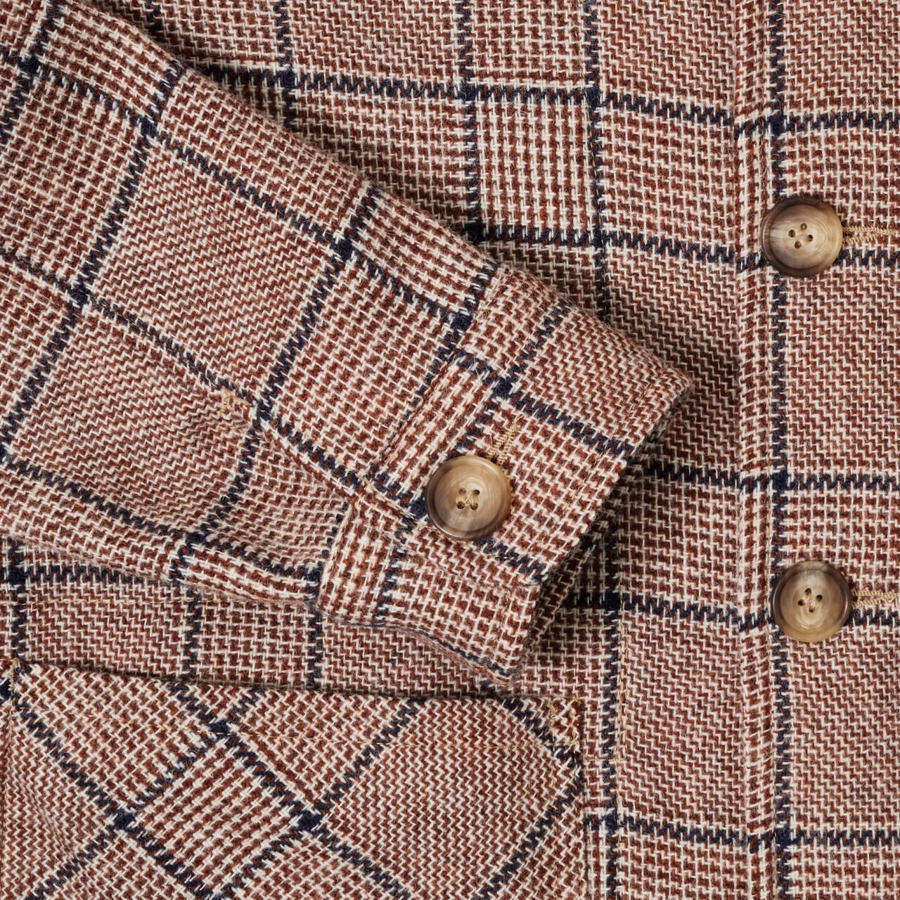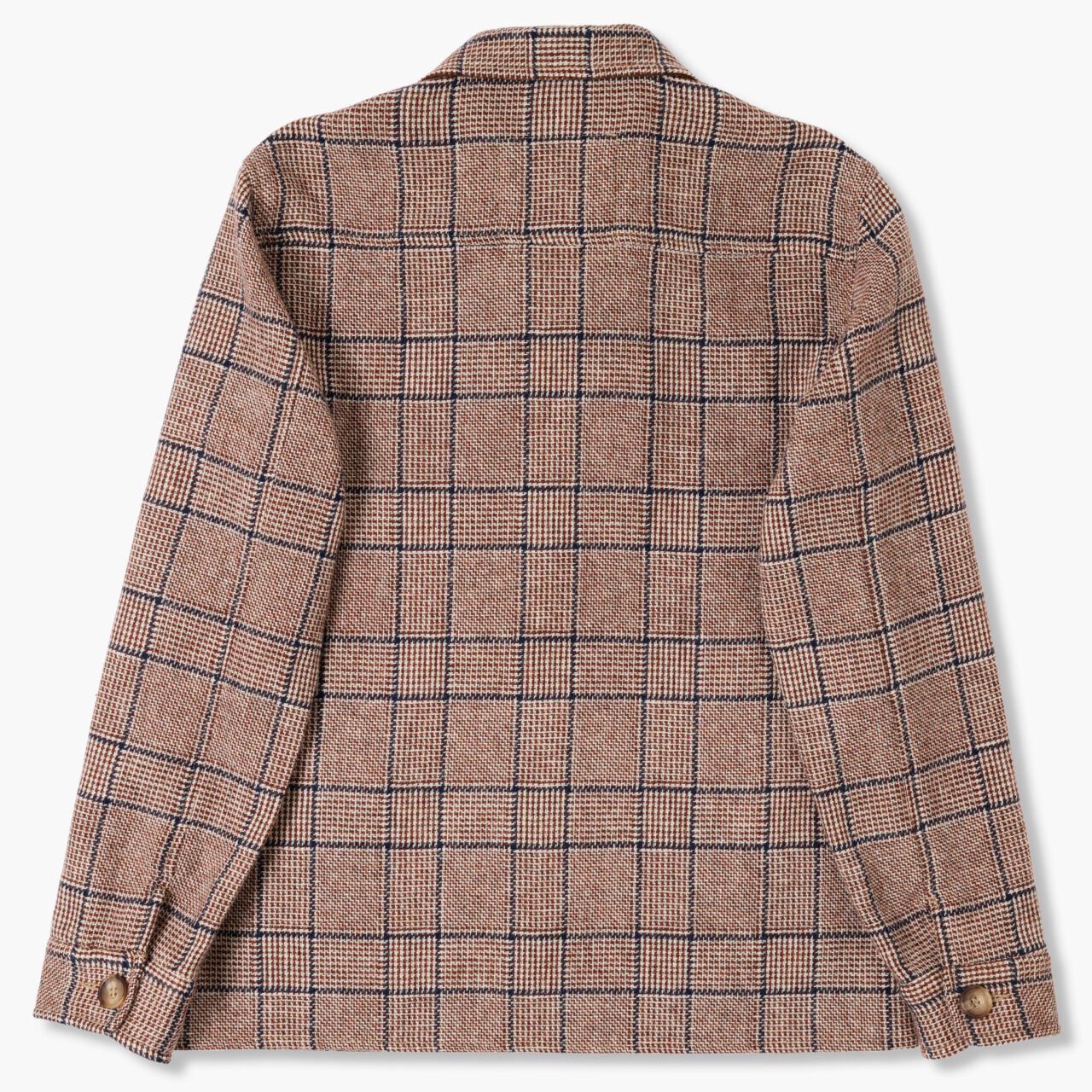 The fabric for this jacket was designed with versatility in mind. We all love a bit of wool in our wardrobes and that is why we dedicated this jacket and fabric to the humble Accrington NORI brick. We have gone for a nice, loosely-woven tweed that makes you look like you own a very big estate in Scotland, when in fact the closest you will get to an estate is the time you worked at an estate agents for five weeks. The fabric is a base of orange and white with a nice, big green overcheck to represent the moss that sometimes grows on ancient bricks in Accy. The fabric is woven from a beautiful Geelong yarn, which, when you touch it, almost feels like cashmere. I have no idea how it happened, but trust me, you’ll want to go to sleep in this. Delicious.