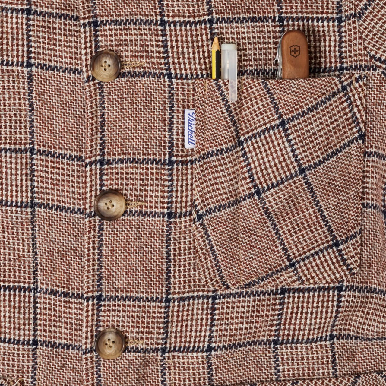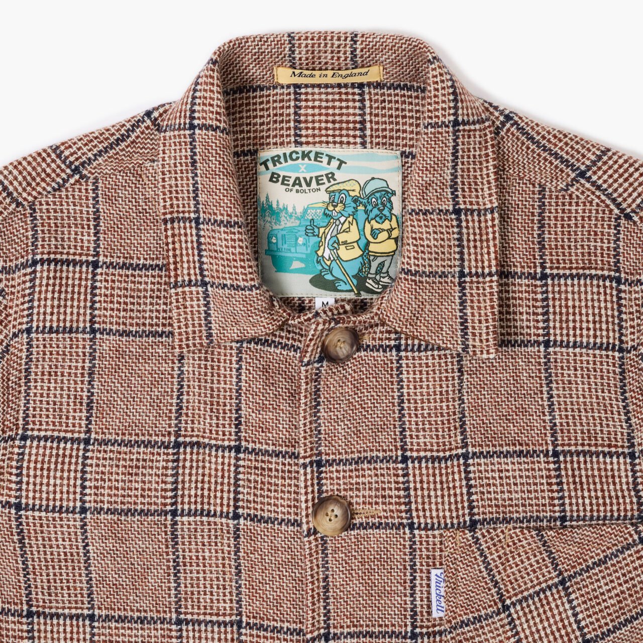 For 2025, we have updated our Mehra a little and added a couple of changes. The collar is now much more like a shirt collar and comes to a point at the front, making it just a touch more versatile. We have our custom sausage roll pocket on the inside of the jacket, but seeing as so many of you wanted a sausage roll and phone on the inside of your jacket, you now have TWO sausage roll pockets. We have also added a herringbone strap around the inside of the jacket to give the waist a bit of structure and to reinforce the bottom pockets… it also happens to look good too. The jacket is still finished with vintage horn buttons down the front and cuffs and a TRiCKETT flag label to the chest pocket. And as if that wasn’t enough, there is a contrast suede panel underneath the collar, fancy eh?
