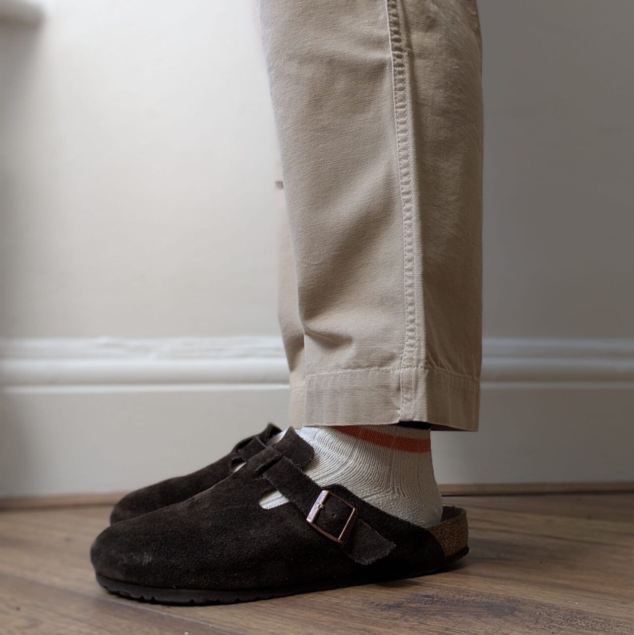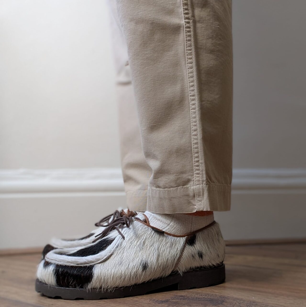 The trousers can be dressed up or down depending on your mood. I think these would look good with white trainers, an oxford shirt and unstructured blazer as well as with a sweatshirt and wallabees. If you want to go for the whole ‘Iain Trickett’ look, wear them with a baseball cap, hoodie, cow print Paraboots and a Charlie Bigham’s curry in your hand…but that is the advanced level.