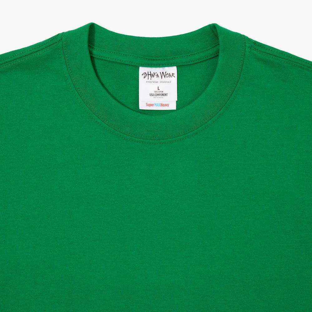 Shaka Wear t-shirts have been the preferred choice of Californian t-shirt connoisseurs for decades because they have a neck- hugging neckline, loose sleeves, a WHOPPING 250gsm fabric and just launder really well. In fact, my all-time favourite t-shirt (Mr. Cartoon tattoo shop) is printed on one of these and it looks just as good as the day I bought it… minus the curry stain from 2019.
