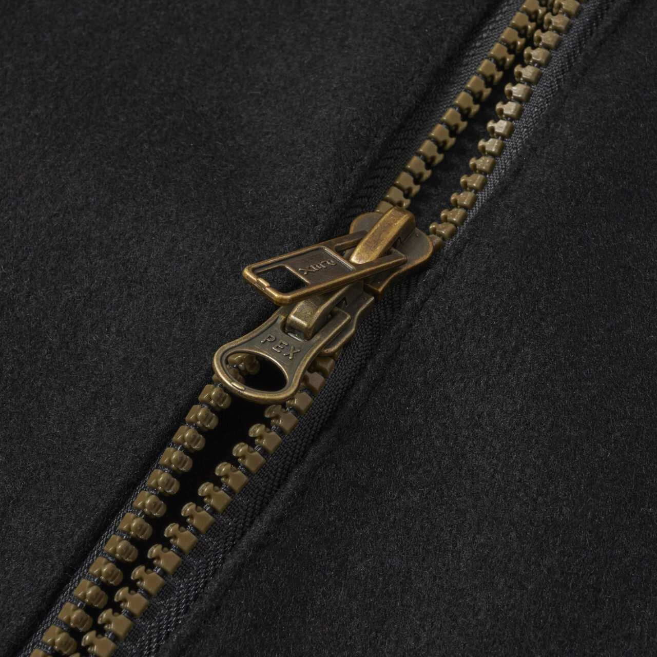 The buttons are from a vintage stock which Upender bought from a company in Birmingham that is now defunct, however at one point they were the biggest button manufacturer in the world… how about that for a fact? The zips are made in Leicester by the last zip manufacturer in the country – each zip is made by hand, measured and inspected by an actual person before it is sent on to us. Each zip pull is added to the zip by hand as there is no way to do this via a machine. The zip we have is a super- chunky two-way zip. This means that you can unzip it when sat down waiting, driving etc, without having to fully unzip your shirt… it also looks great too.