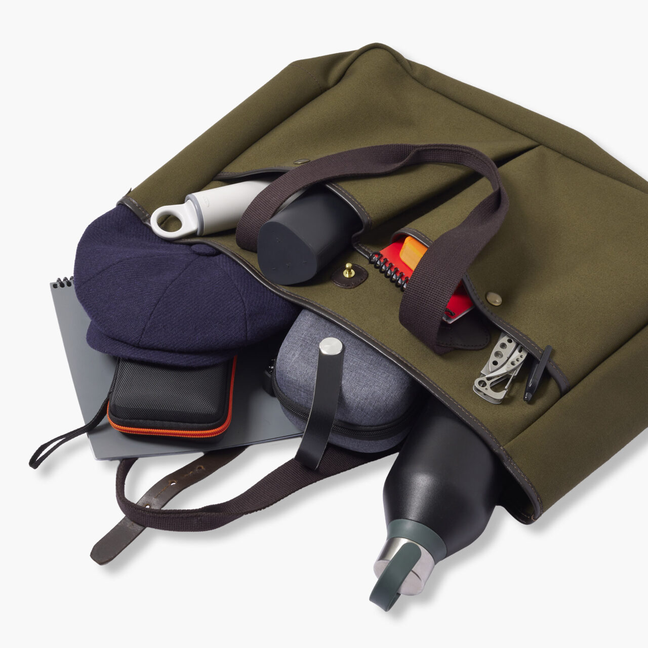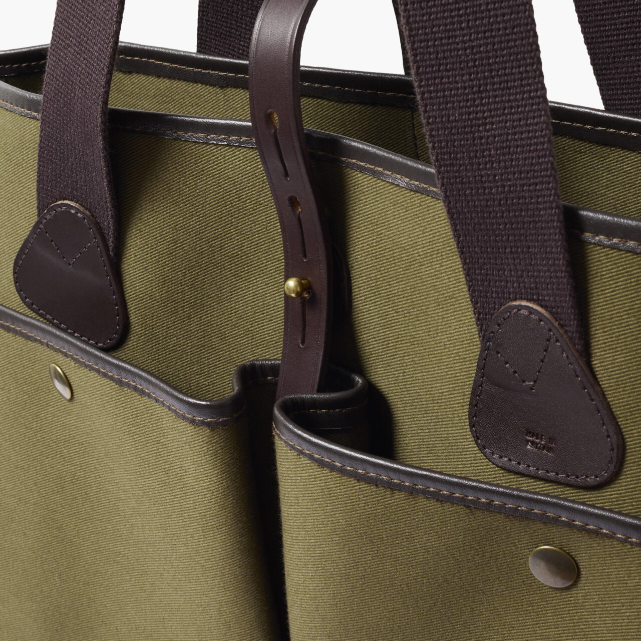 So we decided to come up with something that mixed all the best parts of a bag and none of the weird stuff… welcome to the Laneside tote. We started by looking at shapes that were elegant, but no too try-hard and that led us to this modified tote that you see before your eyes. There are two front pockets with a press stud which give you easy access to things that you need regularly with the added security of brass stud to keep things safely stowed. At the back is a poppered folder/laptop holder, I know most laptops probably won’t fit in there, but if you are in the office, in a rush and the main compartment is overloaded, you can definitely fit it in there temporarily.