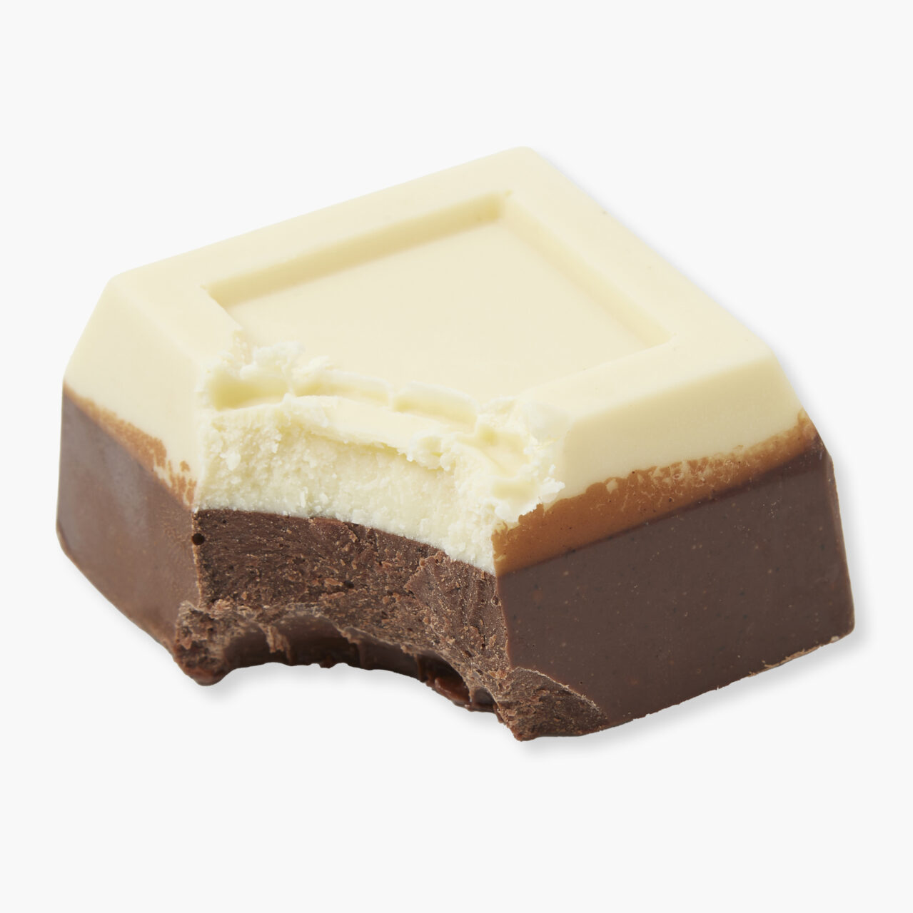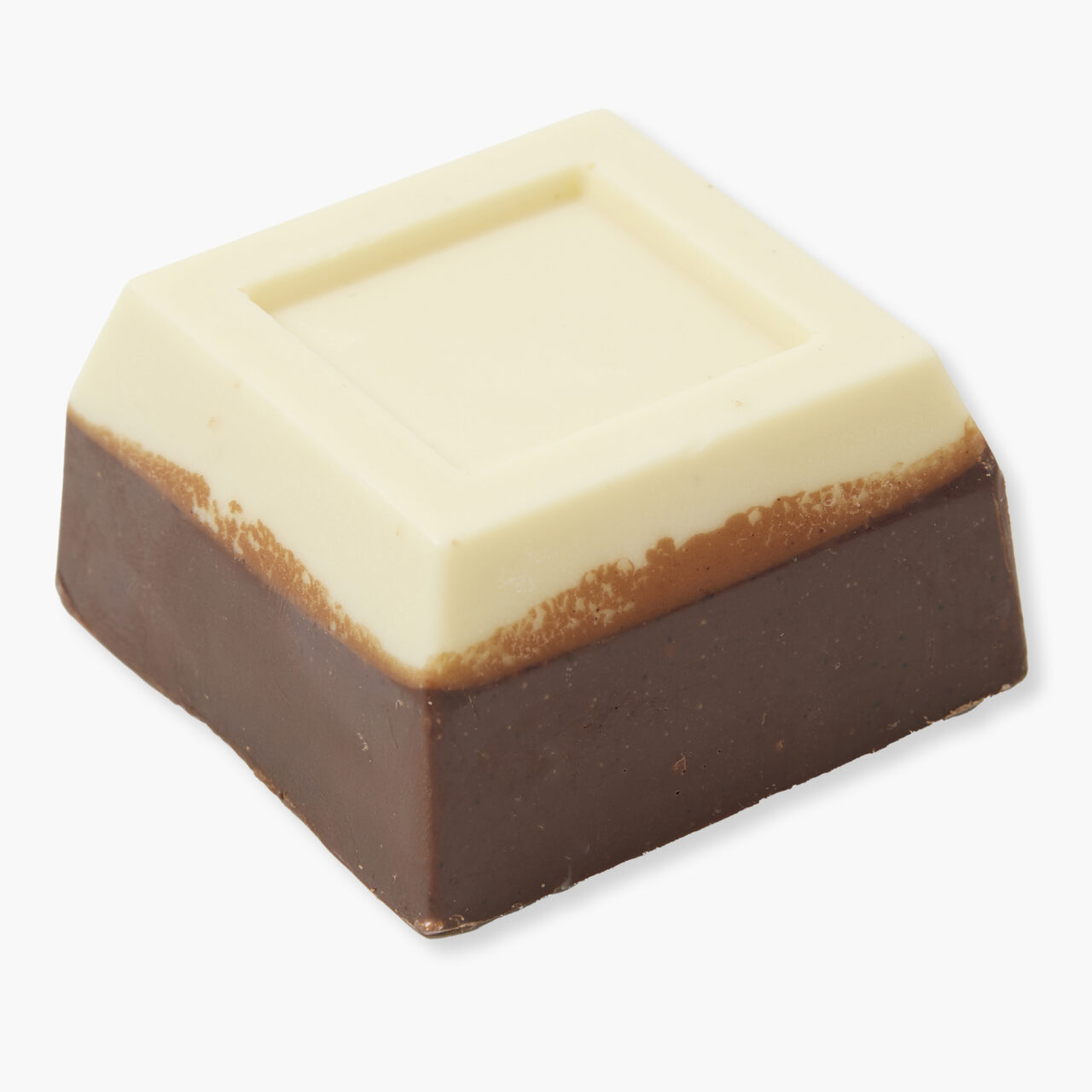 I wanted to design a chocolate treat that looked and tasted like a cappuccino and so I asked my man Mario Gallucci in Napoli to make one. He got his thinking cap on and came back with this 100g block of absolute delight.