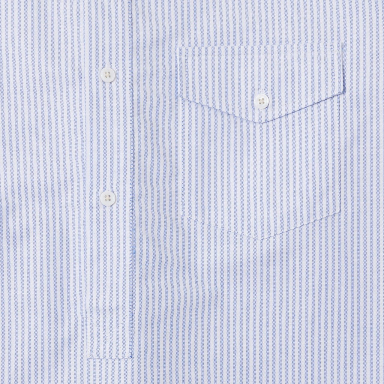 There is a flapped chest pocket, buttons cuffs and a curved hem to make you look extra sleek. The buttons throughout the shirt are made from mother of pearl, not those cheap polyester buttons which most makers use nowadays. The fit is a touch looser than our ivy shirts as you need some extra room to get the shirt over your head, but it is not a huge difference. Always nice to have a little extra room in a shirt, especially when you want that extra slice of Basque cheesecake.