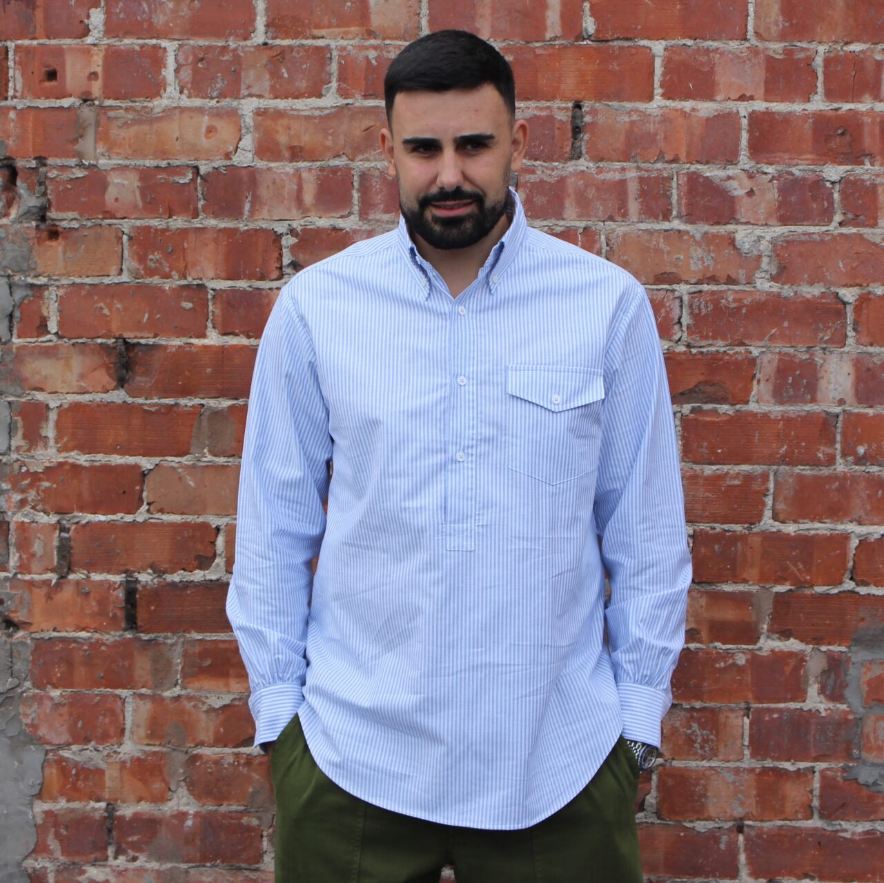 Our popover style is a new one here at TRiCKETT, but one that I have wanted to make for absolutely ages and so spent a little bit of extra time getting all the details right so that you can’t go ‘I wish he would’ve added that’… anyway, on with the show. This style is inspired by a mix of traditional workwear and military clothing worn in the 1920s, the popover shirt was designed so that workers didn’t get their buttons caught in machinery when bending over. Even if you may not be operating heavy machinery whilst wearing this, it’s always nice to know the origins of things.